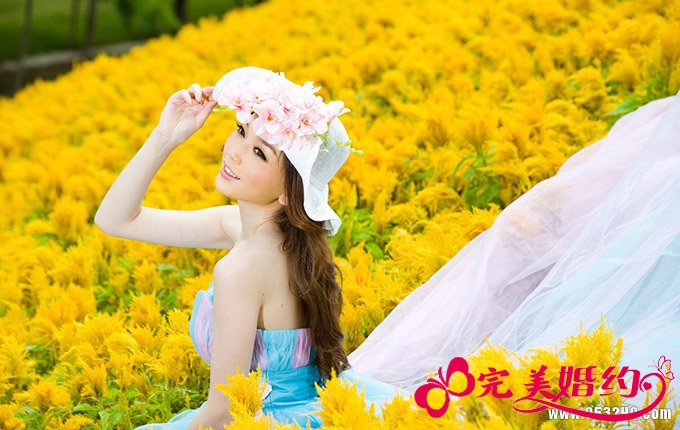 鲜花一直都是婚纱摄影中必不可少的重要道具元素之一。但是只用一种类的花花作为拍摄的背景却是非常少见的。现在的年轻人都崇尚个性的彰显,所以用这样别致的创意来装扮自己的婚纱照,相信效果也会相当不错的呢!今天就跟随小编一齐来欣赏一下这组绽放于金色花海之中的婚纱客照吧。