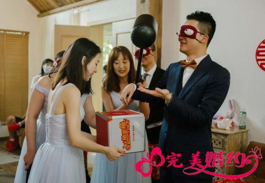 5、兄弟齐心:伴娘提问比如“自拍时的pose”等,只有新郎伴郎团全员动作一致才算过关。