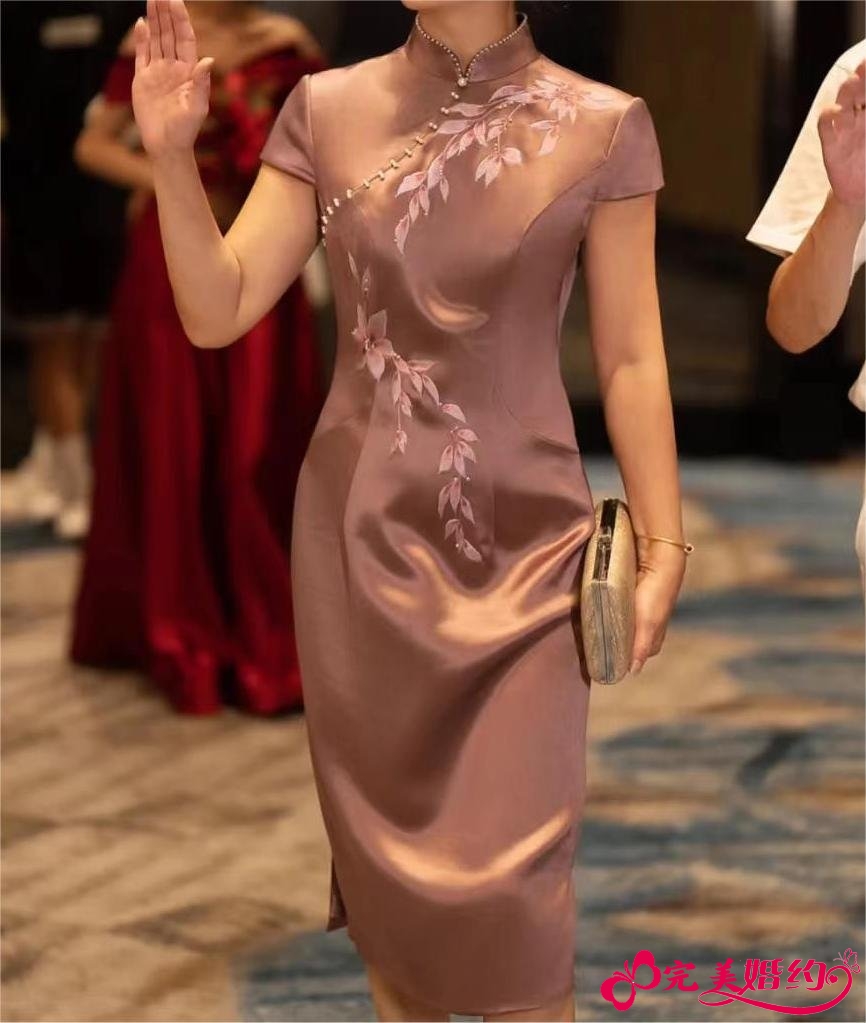 如果新人举办的是中式婚礼,喜婆婆可以选择颜色较为明亮的旗袍或唐装,这样会显得整个人特别精神。如果担心受凉,可以在外面加一件相配的开衫或披肩。